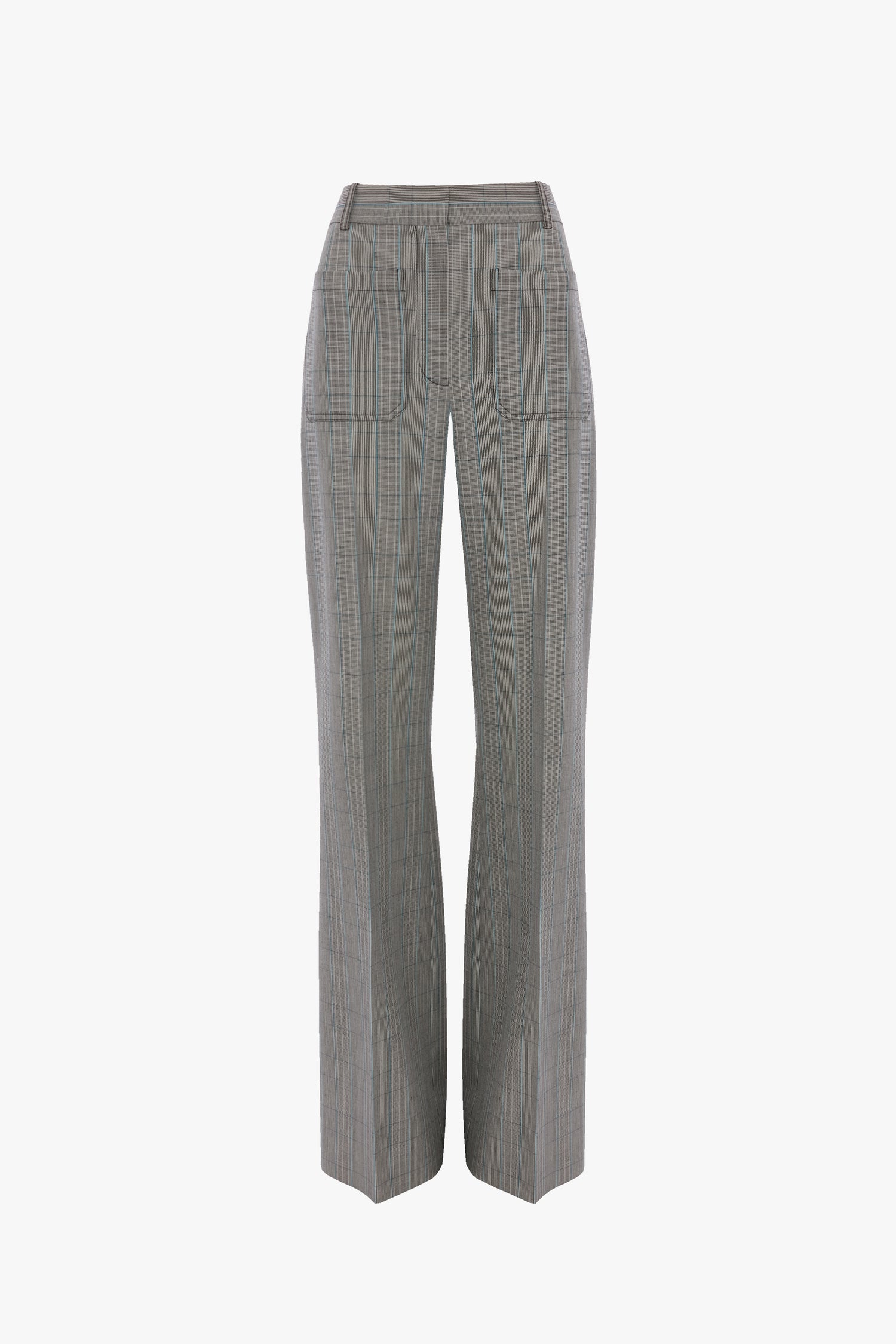 A classic from the Victoria Beckham archive, the Alina Trouser is reimagined in Grey-Blue Check for the new season. Drawing on 1970s style references, the structured Alina has a super-high waist and flared leg for a well-proportioned silhouette. Front and back patch pockets add a practical and polished design feature.