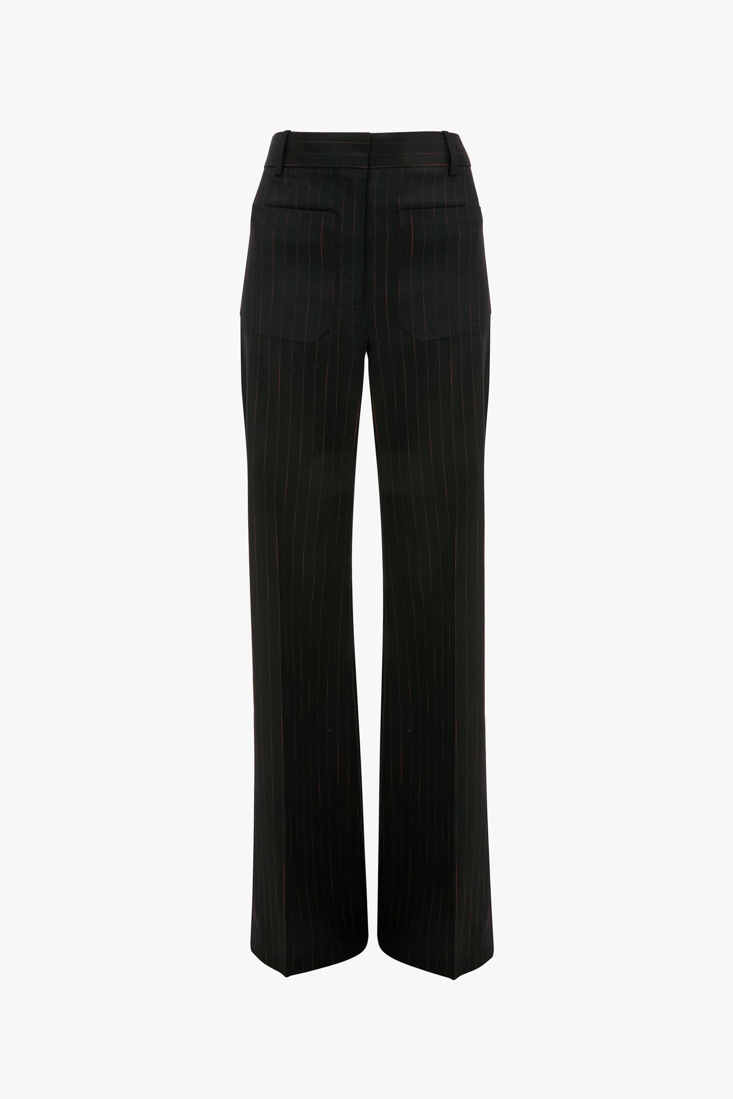 A favourite from the Victoria Beckham archive, the Alina High Waisted Trouser is presented in a Navy-Rose pinstripe for the new season. Expertly tailored from a fluid wool blend for an impeccable fit, the Alina Trouser gives definition to the waist before pooling into a flattering wide leg. Front and back patch pocket details draw on 1970s-style references and add visual interest.