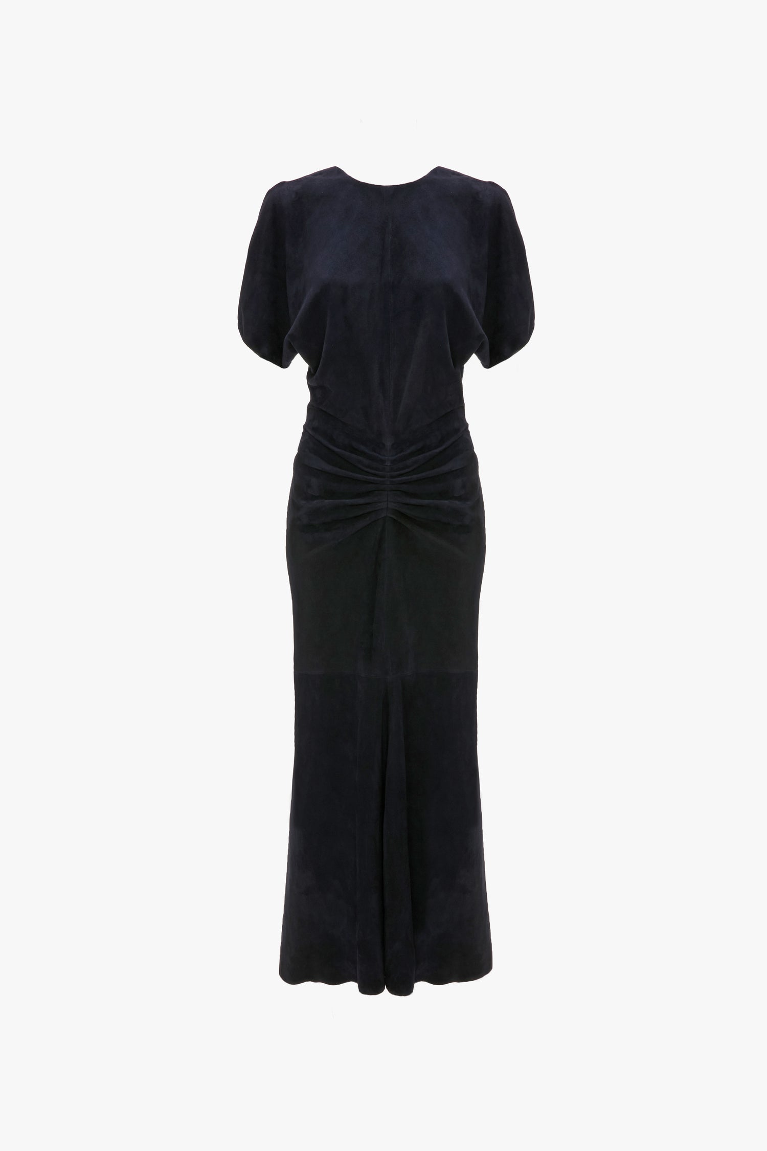 The house’s Bela Midi Dress is reinvented in velvet-soft suede for the new season. Presented in versatile Navy, it has the Gathered Waist Midi Dress’s signature pleating at the waist, flattering V-shaped seam at the back, graduated hemline and contrasting topstitch. Lined in tactile twill for absolute comfort, it embodies the brand’s contemporary point of view.