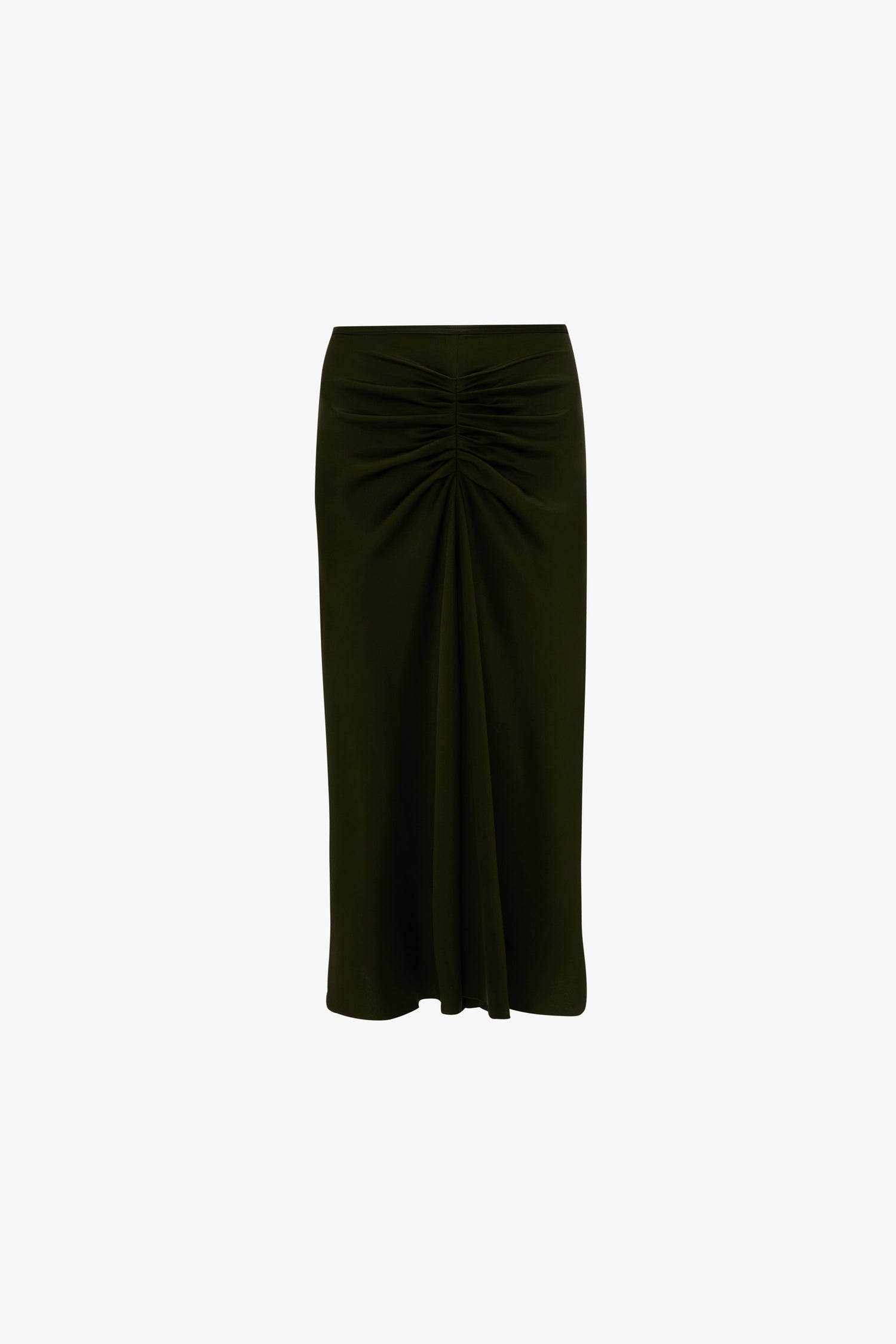 With a flattering fit-and-flare silhouette, the Bela Midi Skirt is a wear-anywhere wardrobe staple. Crafted from tactile crepe back satin, it has sensuous pleats at the front and back, side seams with exposed overlocking and a contrasting stitch detail. Presented in versatile Dark Olive, it embodies the house’s unstudied elegance.