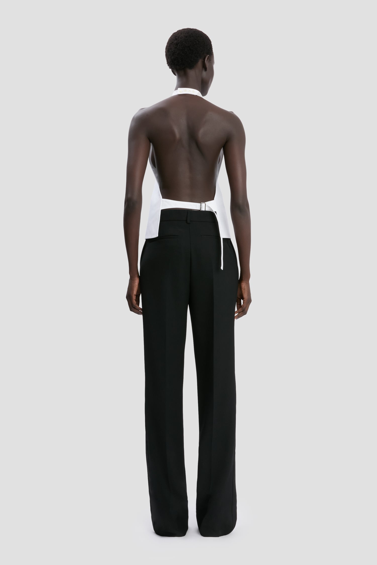 Modest at the front, seductive at the back, the Backless Bib Top in crisp White blends polished and provocative design codes beautifully. Crafted from stretch cotton, it has an adjustable neck with button closure and an adjustable back belt.