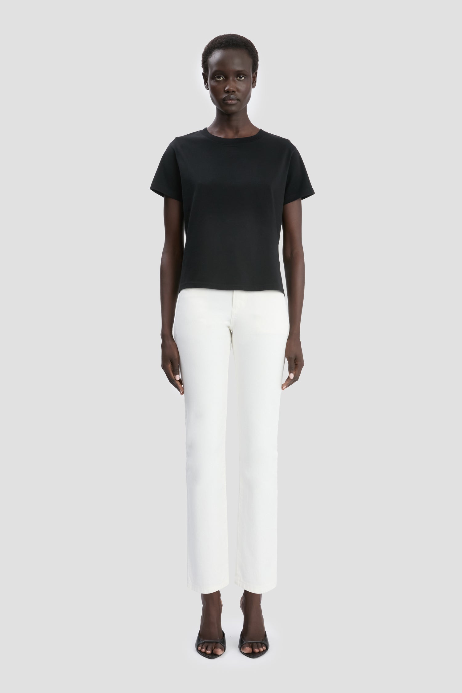 A traditional crew neckline and a straight fit give the Boxy T-Shirt in classic Black a relaxed, boyish silhouette. Finished with the house’s signature Victoria Beckham embroidered monogram at the back of the neck, it is crafted from 100% organic cotton for comfort and breathability.