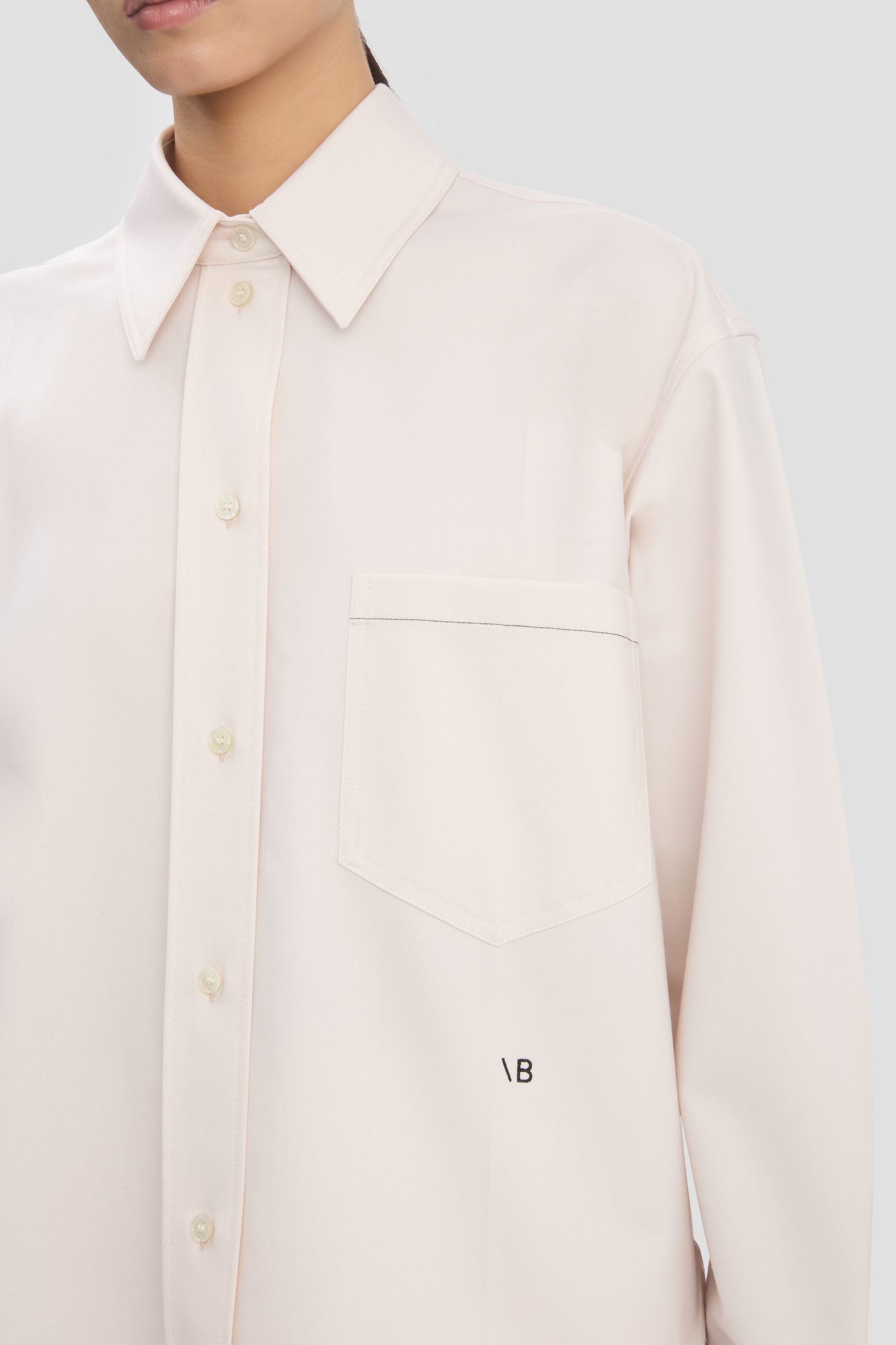 A cropped hemline imbues traditional shirting with a modern edge. Presented in versatile Bone, the Long Sleeve Shirt is crafted from a lightweight wool blend and has a box pleat at the back for added structure. Tonal stitching on the collar and back yoke and a contrasting stitch at the chest pocket and cuffs add discreet talking points.