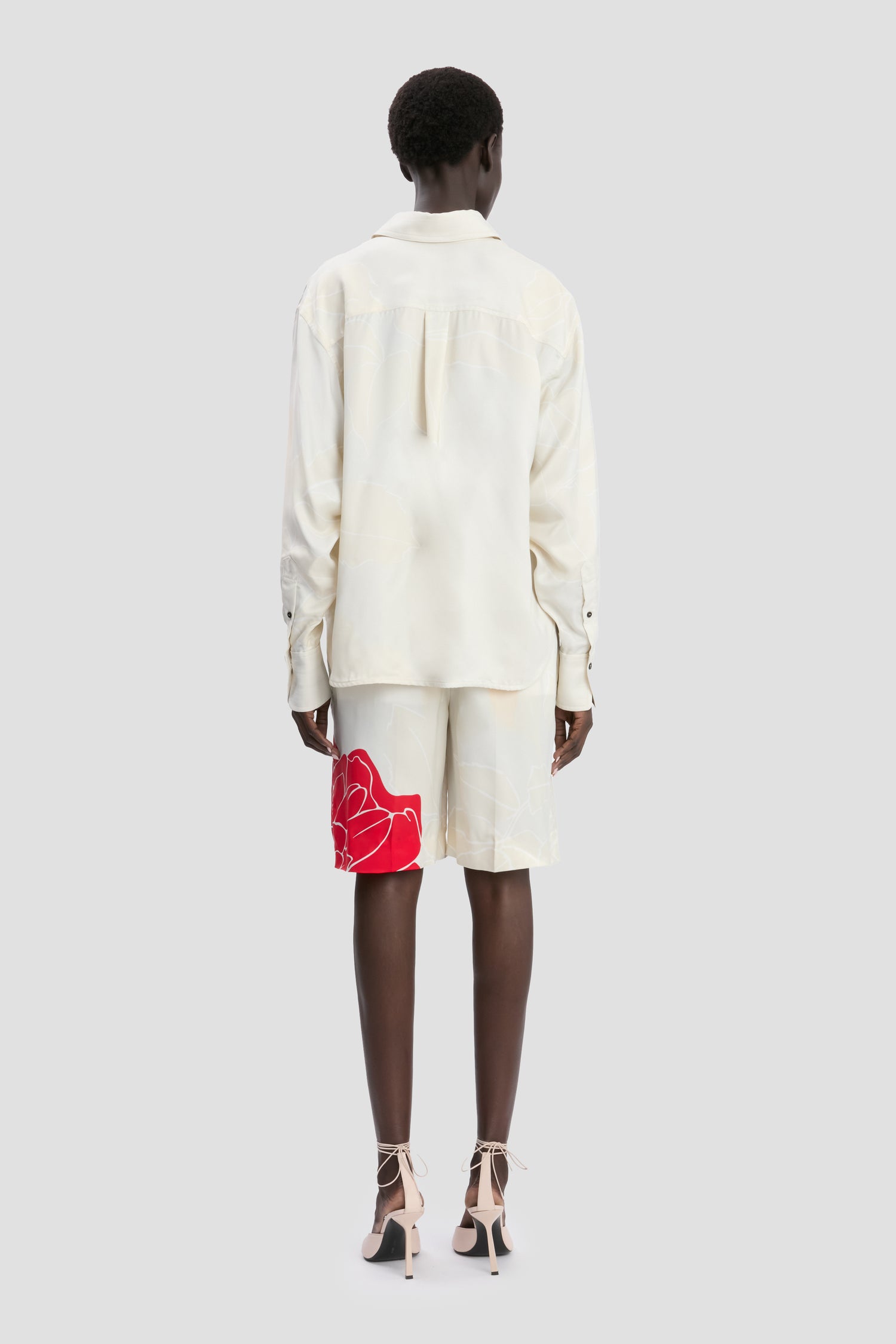 A statement floral print gives the shirt its unique personality. Designed with a cropped fit and a box pleat at the back, it has a structured silhouette and is finished with tonal stitching on the collar and back yoke.