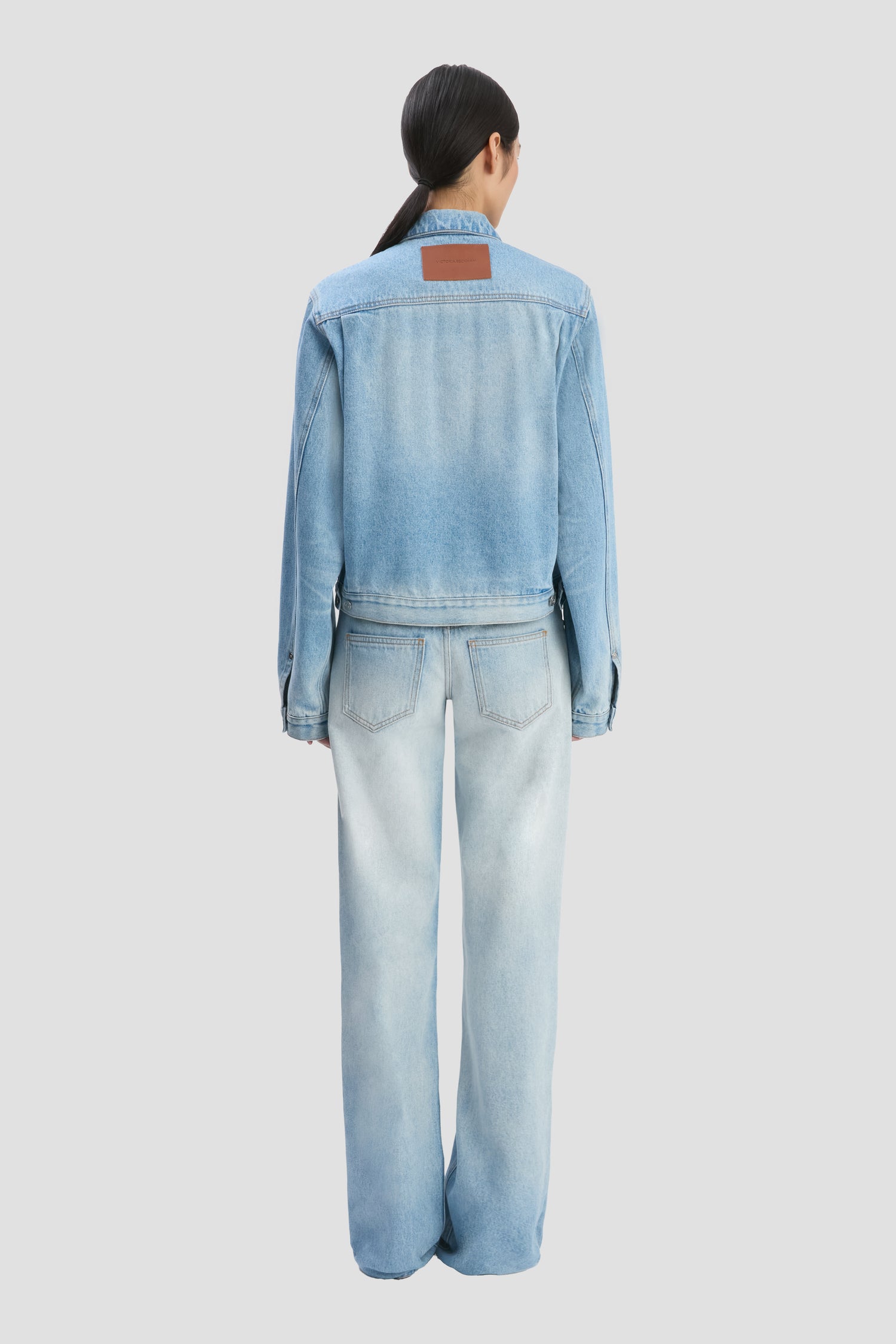 This classic Denim Trucker Jacket in Heritage Blue has a traditional collared neckline, front placket and tobacco topstitching. Crafted from 100% mid-weight cotton denim, it is presented in an acid wash for a modern, urban aesthetic.