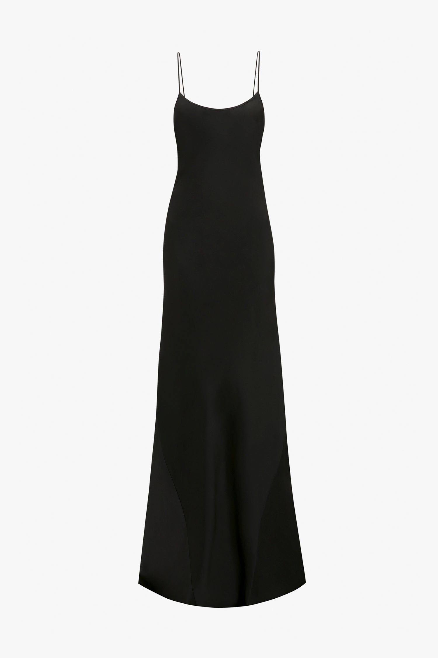 The camisole and slip dress were staples in the 90s, one of Victoria's favourite decades. Made from fluid, crepe back satin, it features a deep V and strap detail on the back that adds to its open, light feeling. In classic black, it's an effortless piece for any occasion.