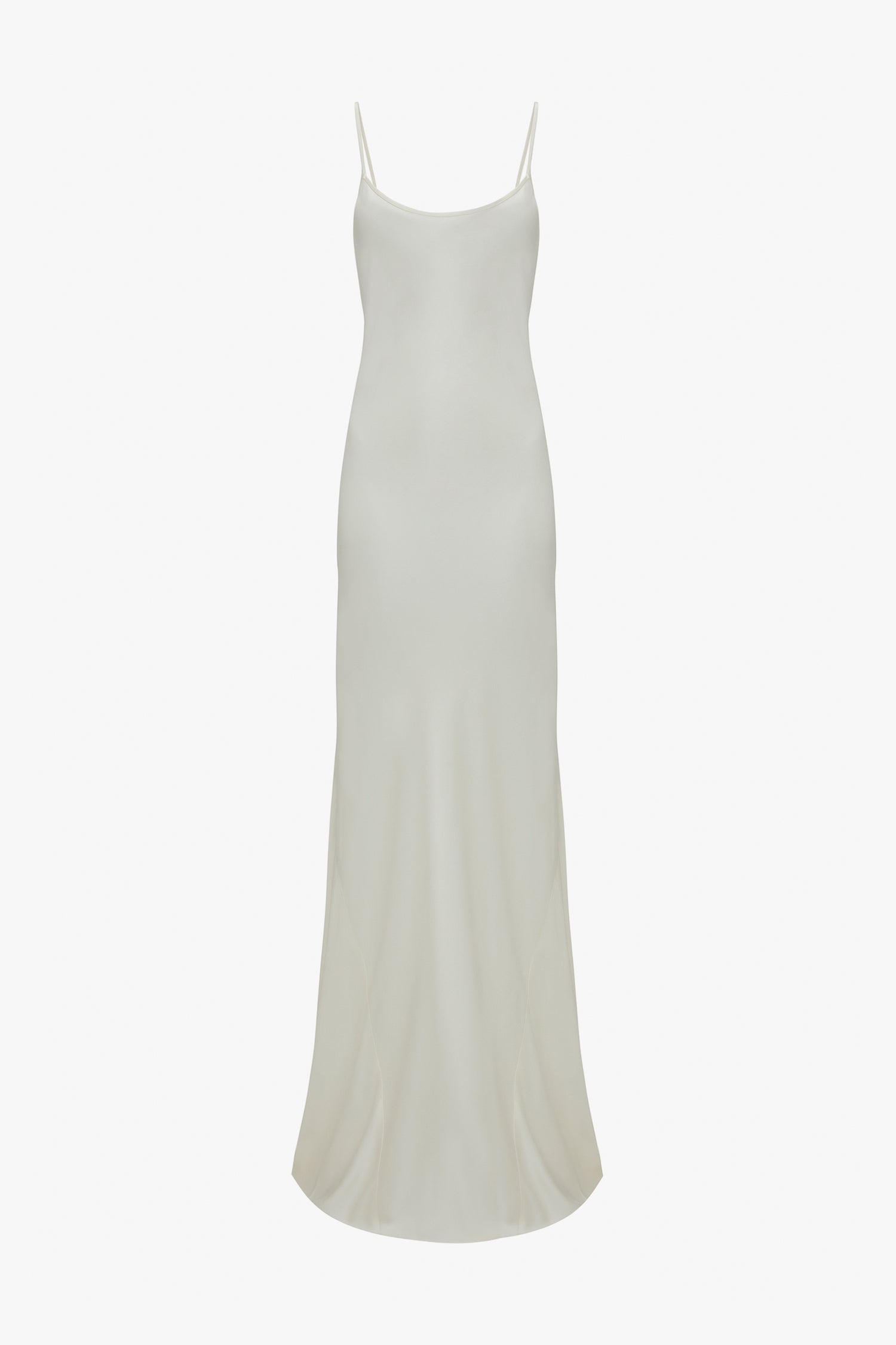 The camisole and slip dress were staples in the 90s, one of Victoria's favourite decades. Made from fluid, crepe back satin, it features a deep V and strap detail on the back that adds to its open, light feeling. In classic ivory, it's an effortless piece for any occasion.
