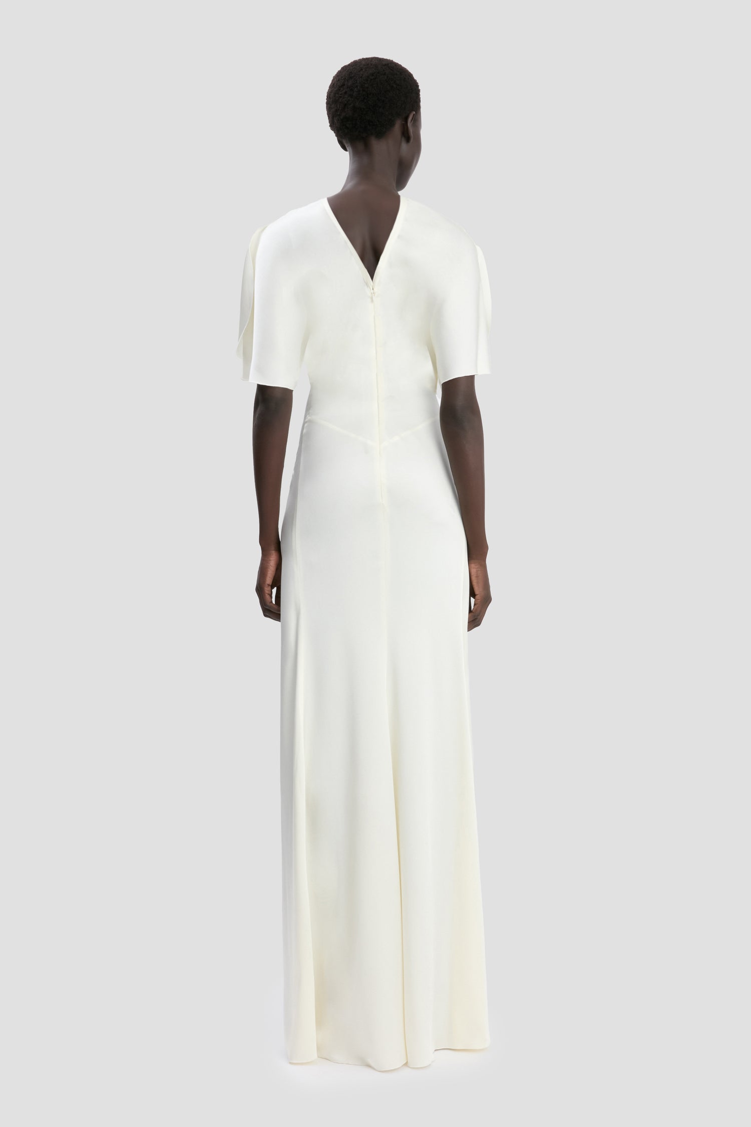 Reimagined in a nostalgic shade of Ivory, the Isabella Dress is a romantic proposition for the new season. Crafted from luxurious crepe back satin, it is fitted at the waist and hip for a flattering hourglass shape. A provocative open back design, elegant tie detail at the back of the neck and tactile pleating at the skirt add sensuous points of difference. A floor-pooling hemline adds a dramatic finishing touch.