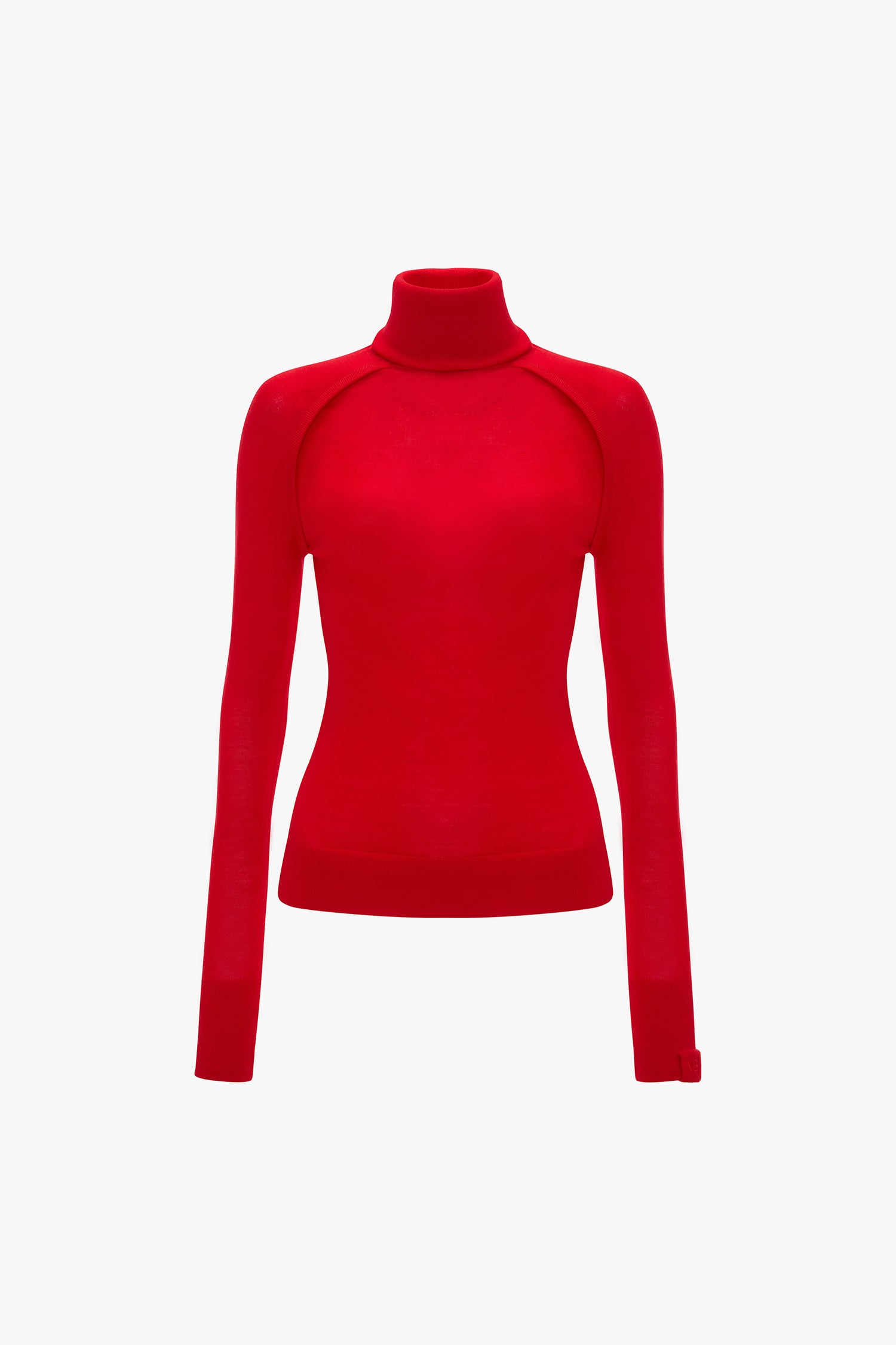 A vibrant Bright Rose colourway brings an energetic point of view to the High Neck Jumper. Crafted from tactile 100% merino wool, it has a slender cut, high neck design and long sleeves with thumb holes. Ribbed trims along raglan shoulders bring definition to the silhouette and a branded embroidered tab at the cuff adds an elevated point of difference.