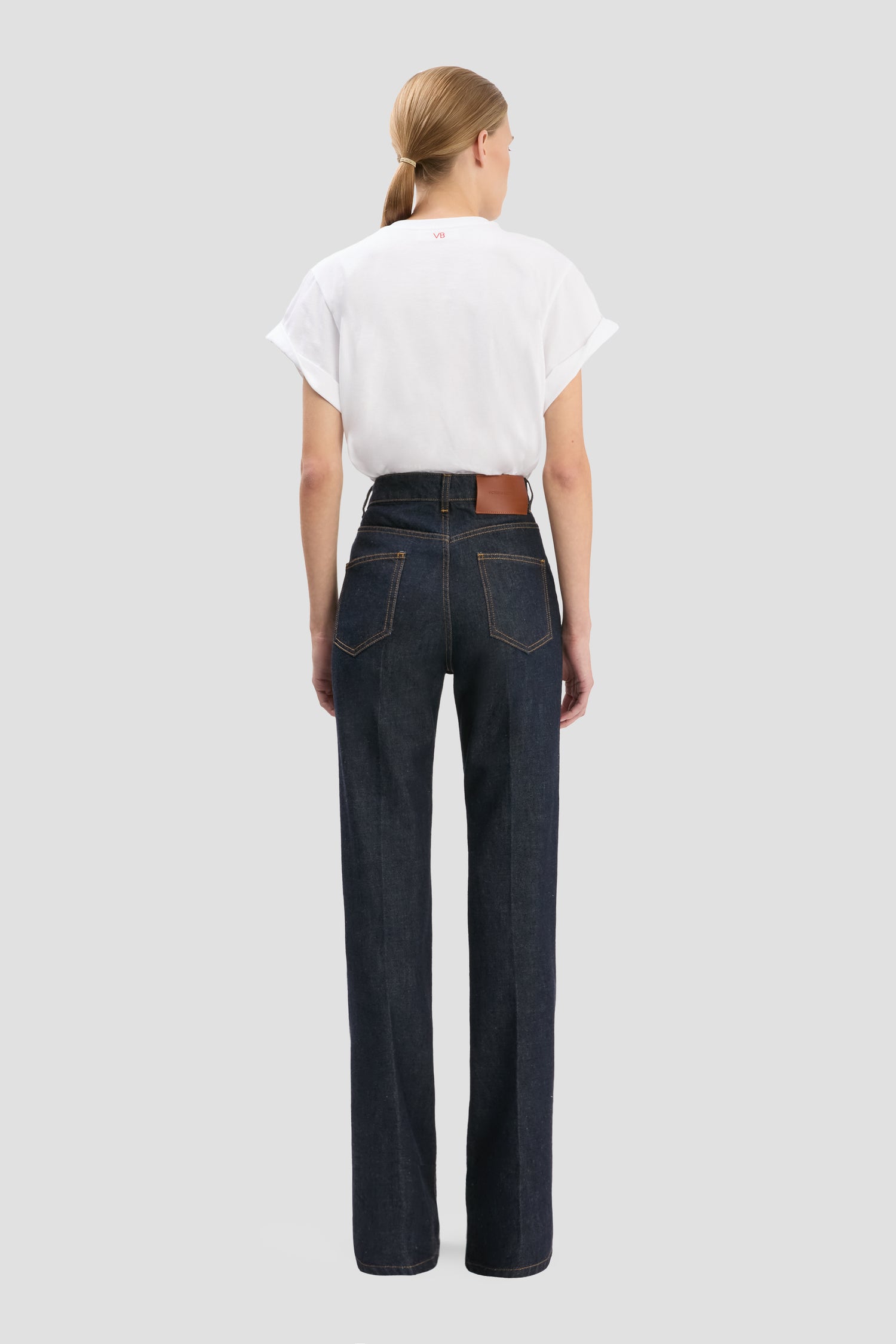 The Julia Jeans have a figure-flattering high waistline and an elongating straight leg. Crafted from stretch denim and presented in Indigo, they have a traditional five-pocket design, tobacco topstitching and branded hardware.