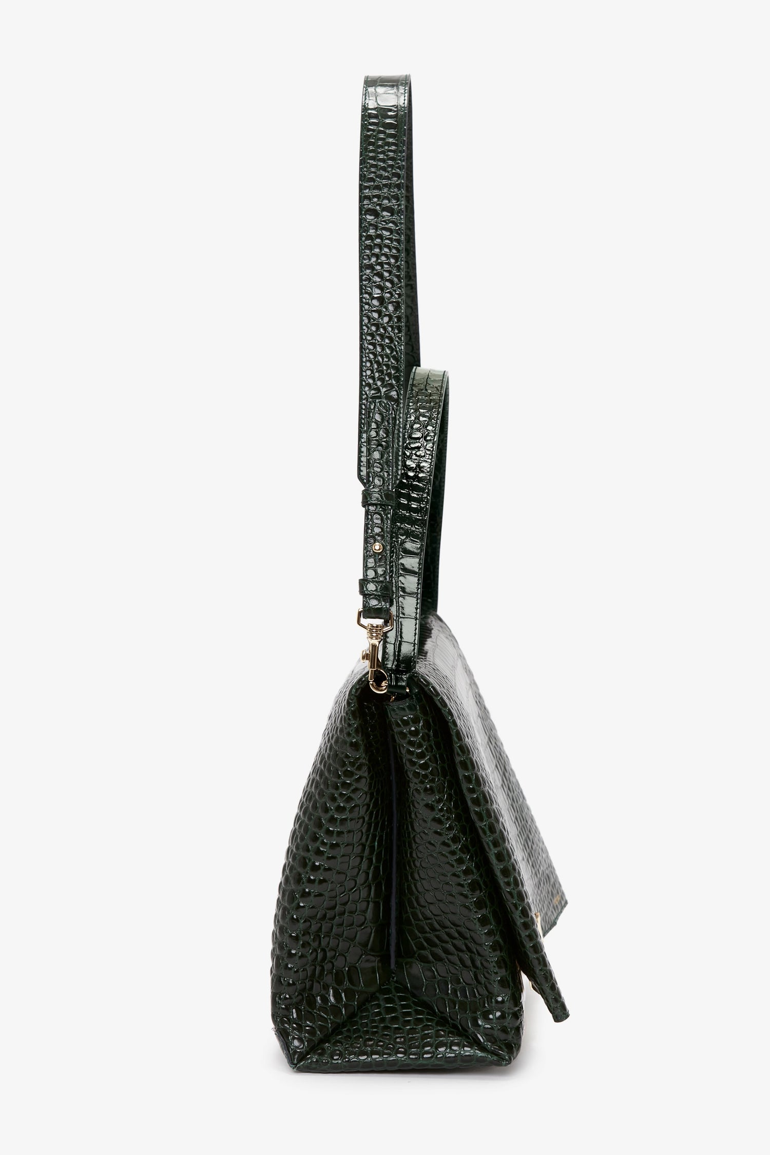 Jumbo Chain Pouch in Dark Forest Croc-Effect Leather