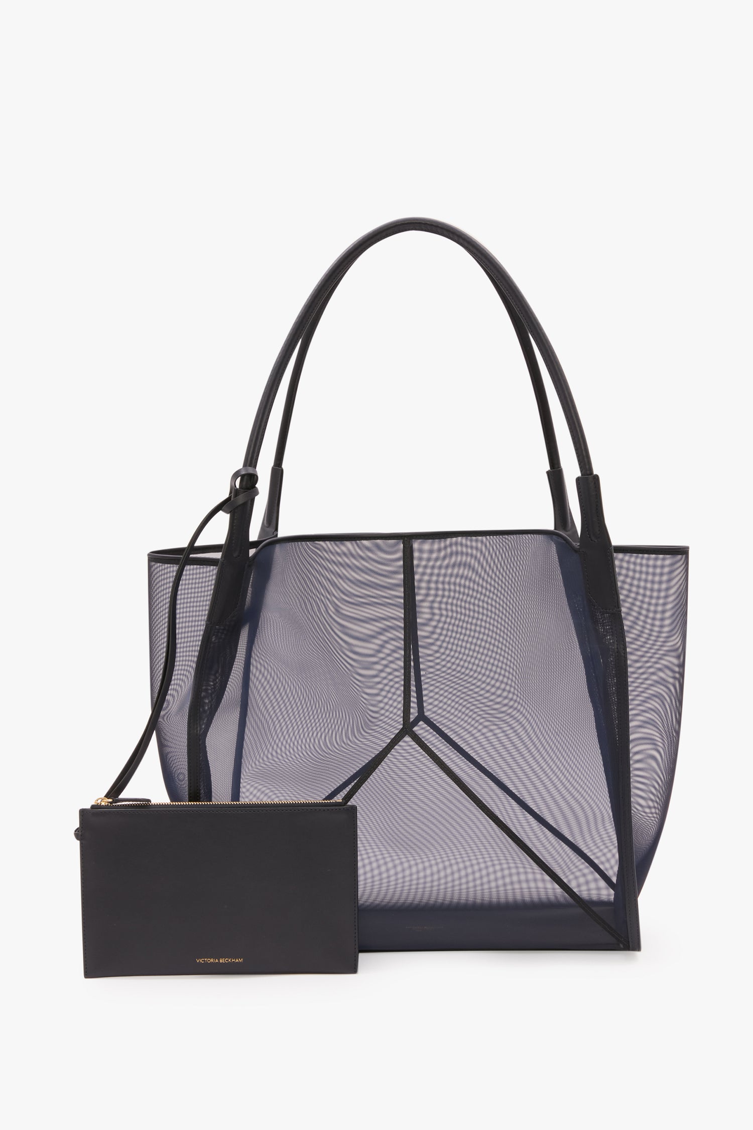 A fresh reiteration of the classic Victoria Tote, the Large Victoria Tote In Navy Mesh is crafted from 100% polyamide and includes a removable flying pocket. Defined by the same unstructured silhouette and clean lines as the original Victoria Tote, it expresses beautifully the house’s unique point of view.