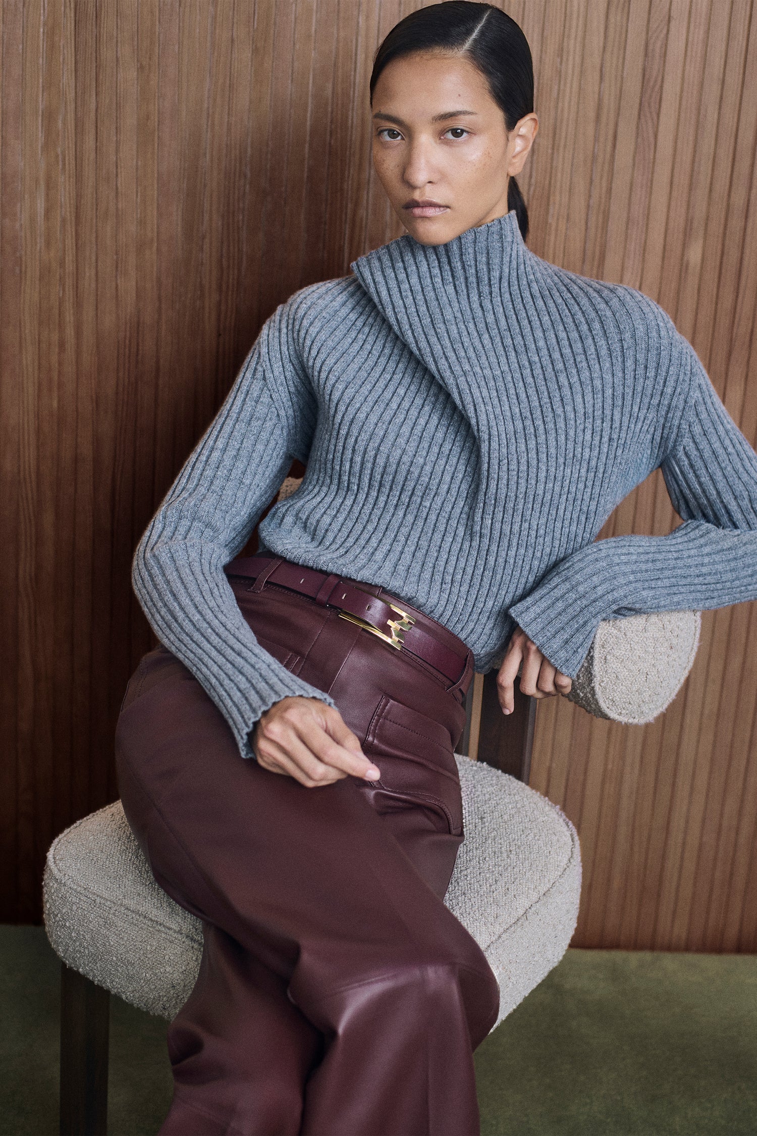 A classic from the Victoria Beckham archive, the Alina Trouser is reimagined in supple nappa leather and half-lined in soft cotton for the new season. With a super-high waist and flared leg, it has an elongating silhouette, while traditional front and back patch pockets bring a 1970s sensibility. Presented in Soft Burgundy, it makes a confident statement.