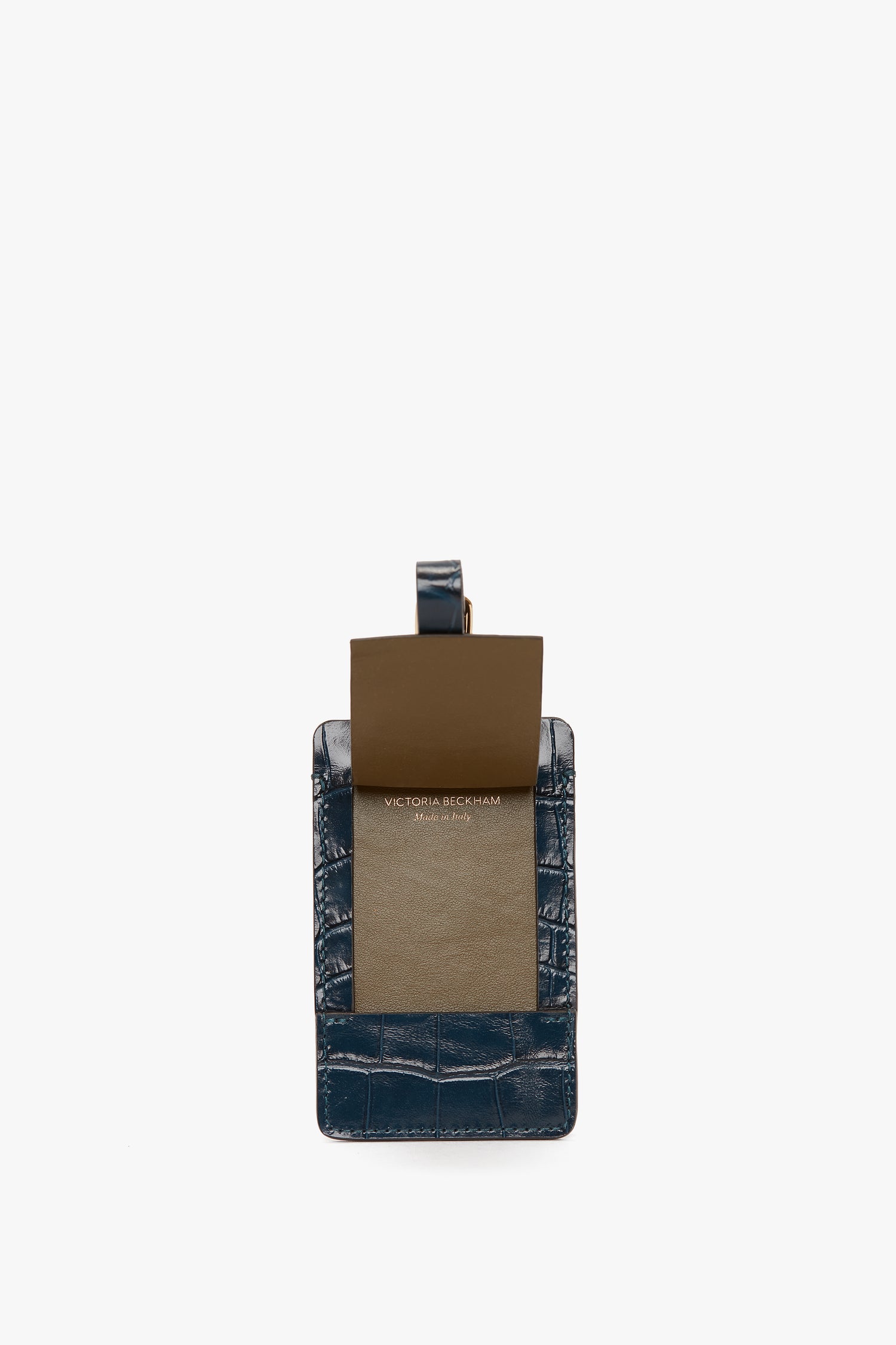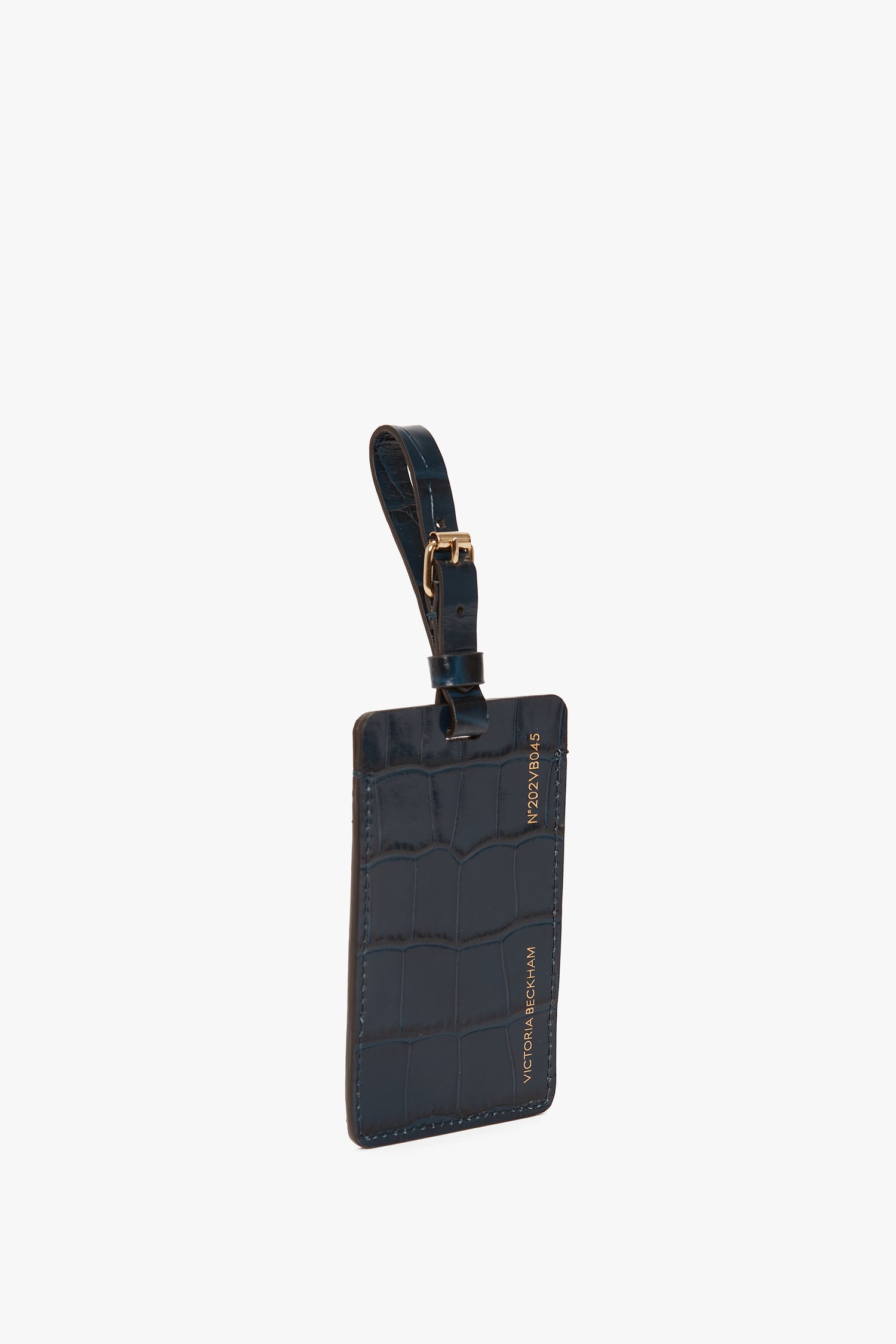 Luggage Tag In Midnight Blue Croc Embossed Leather