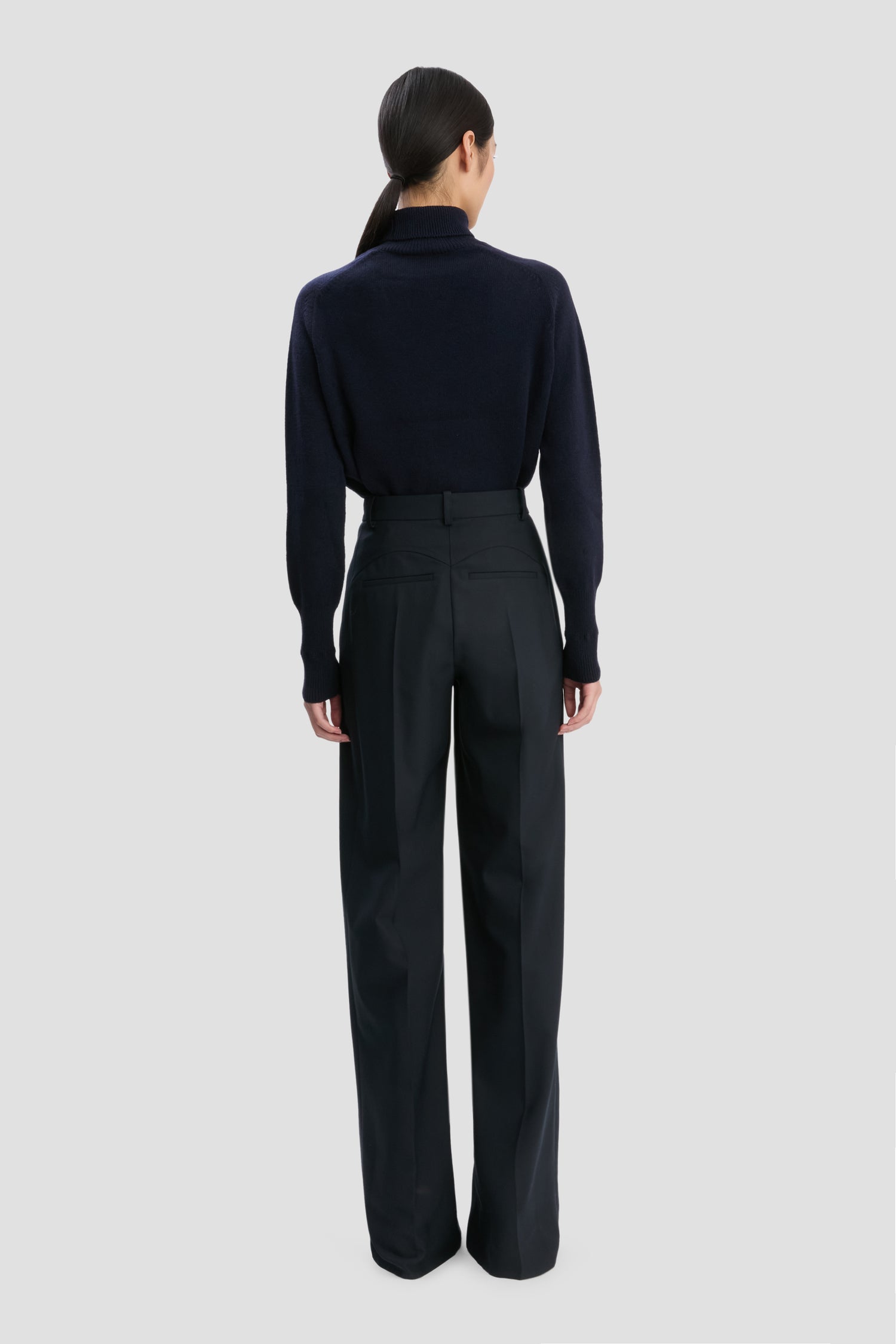 Created in an endlessly versatile shade of Navy, this lambswool polo neck has a saddle shoulder design and contrasting ribbed neck, which can be folded over or worn upright for versatile styling options. A contrasting embroidered Victoria Beckham monogram adds a discrete design detail.