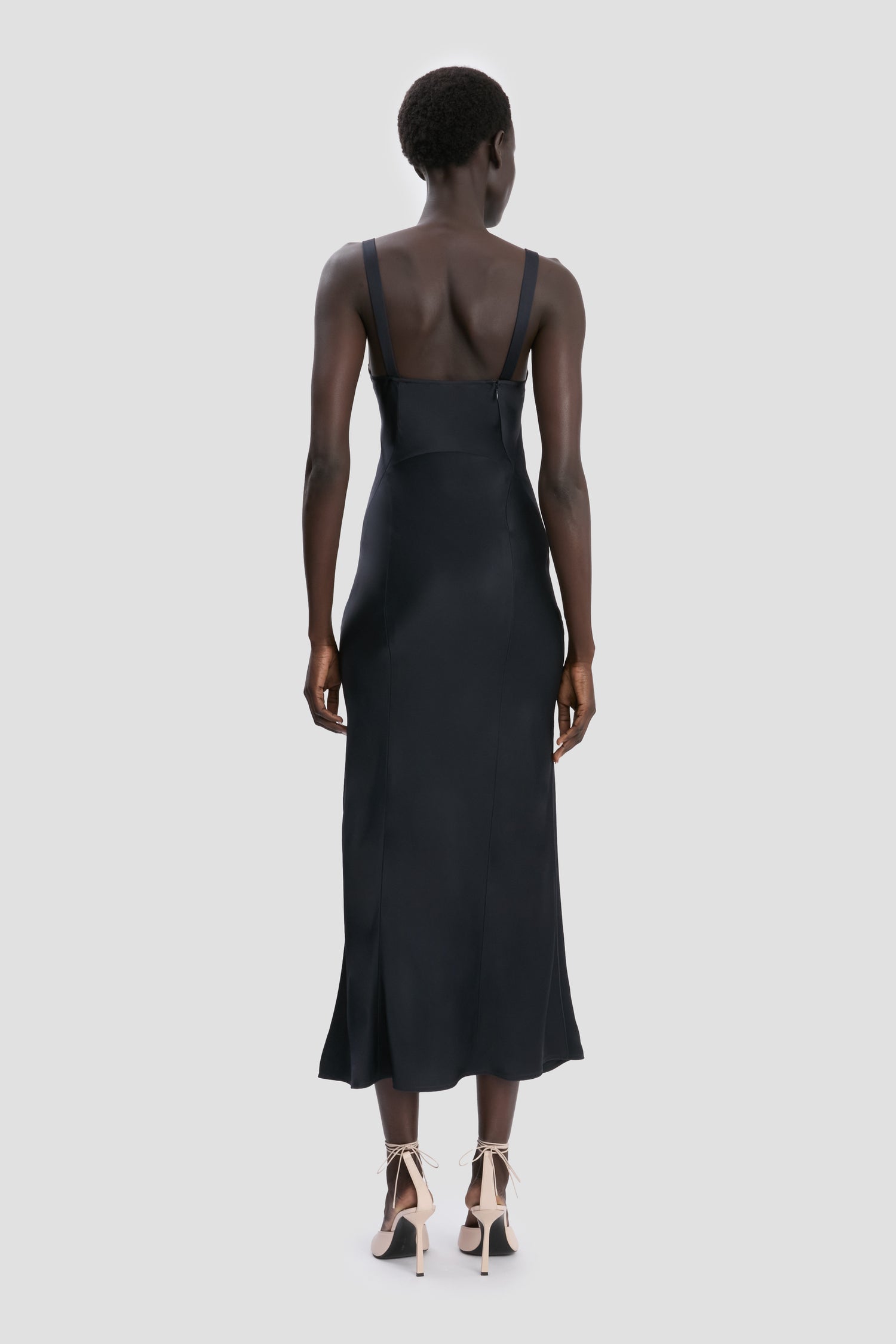 The iconic 1990s cami dress is given a fresh perspective with curved seams and a side-seam split. Presented in versatile Navy, the Panelled Cami Dress has spaghetti straps and is cut on the bias for a figure-flattering silhouette.