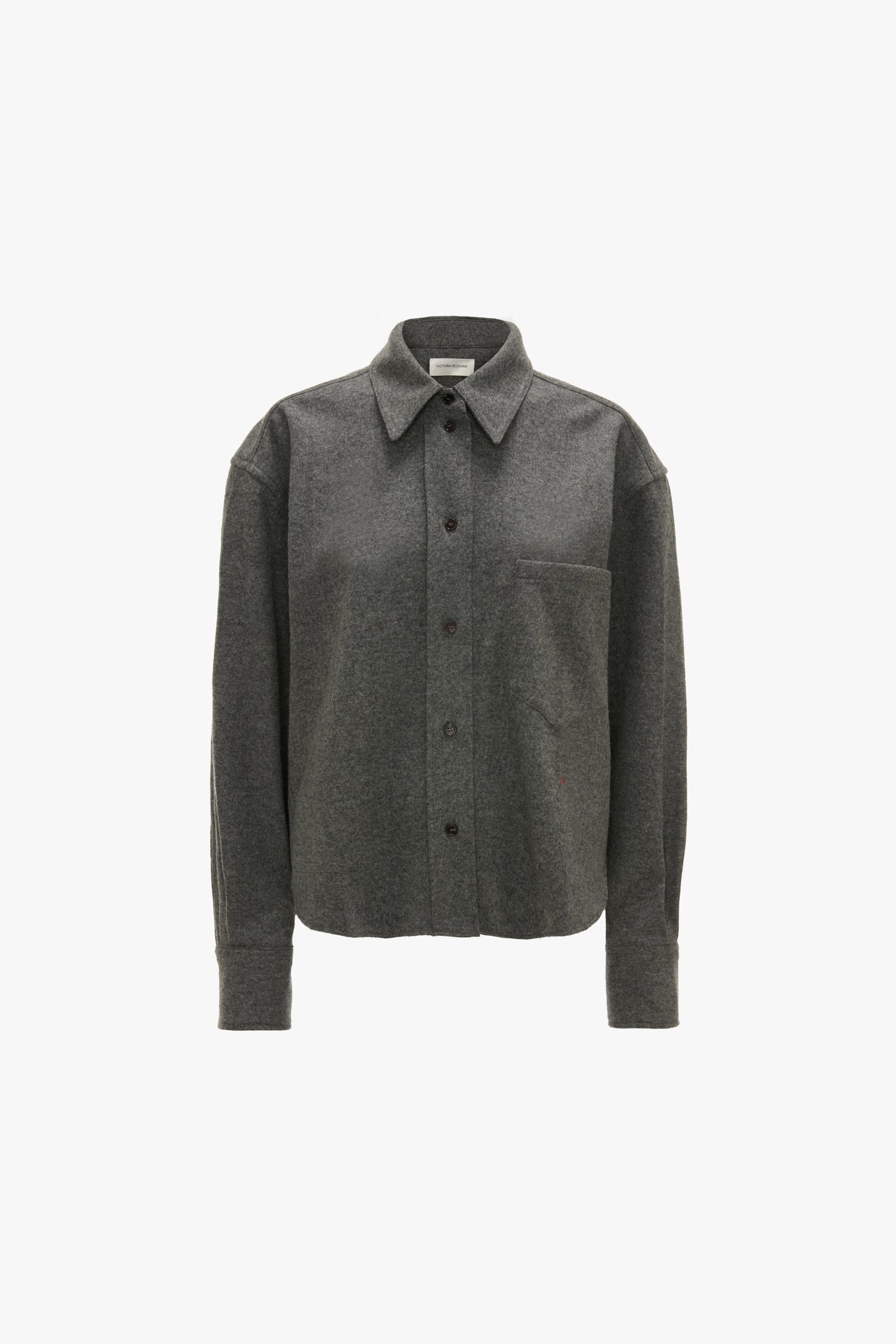 Masculine-inspired shirting is part of the Victoria Beckham brand DNA. The Pocket Shirt combines traditional detailing, such as a collared neckline, button cuffs and a front-button fastening, with a contemporary oversized fit and feminine cropped hemline. A Victoria Beckham monogram in red stitching brings an attractive punctuation to the Grey Melange colourway.