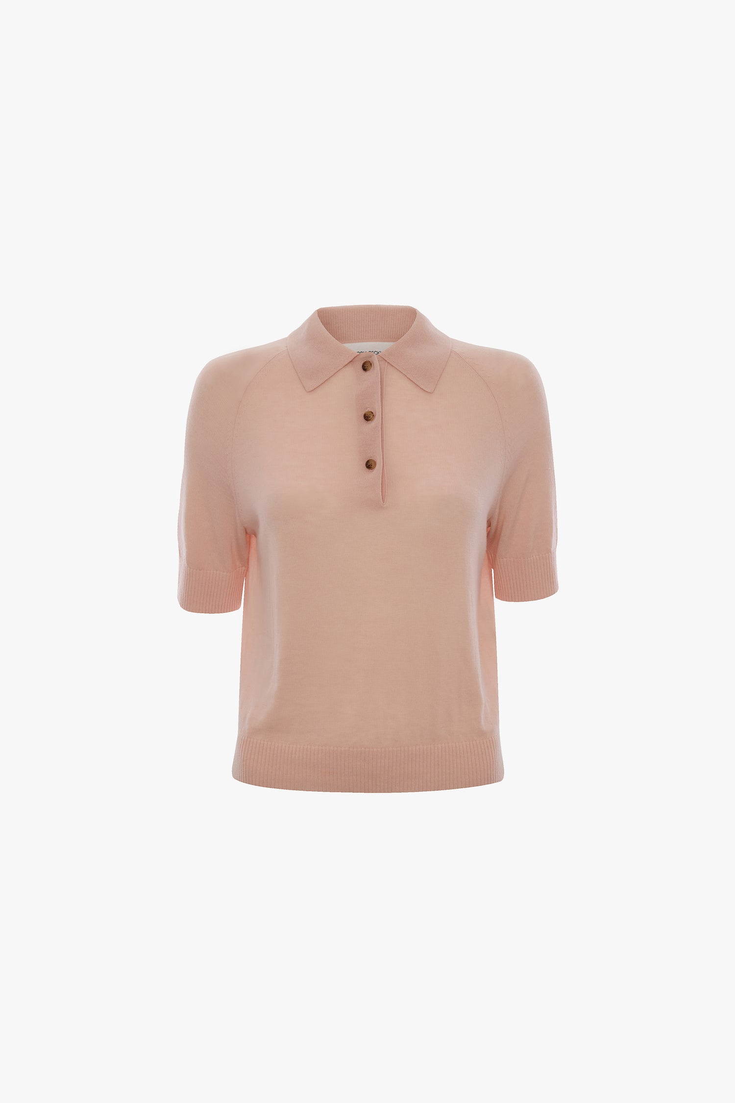 Casual but refined, the Polo Top in Pale Rose is crafted from a lightweight, fine-gauge knit. It has a traditional collar with buttons, relaxed raglan sleeves and a ribbed trim. It is finished with a Victoria Beckham embroidered tape at the back of the neck.