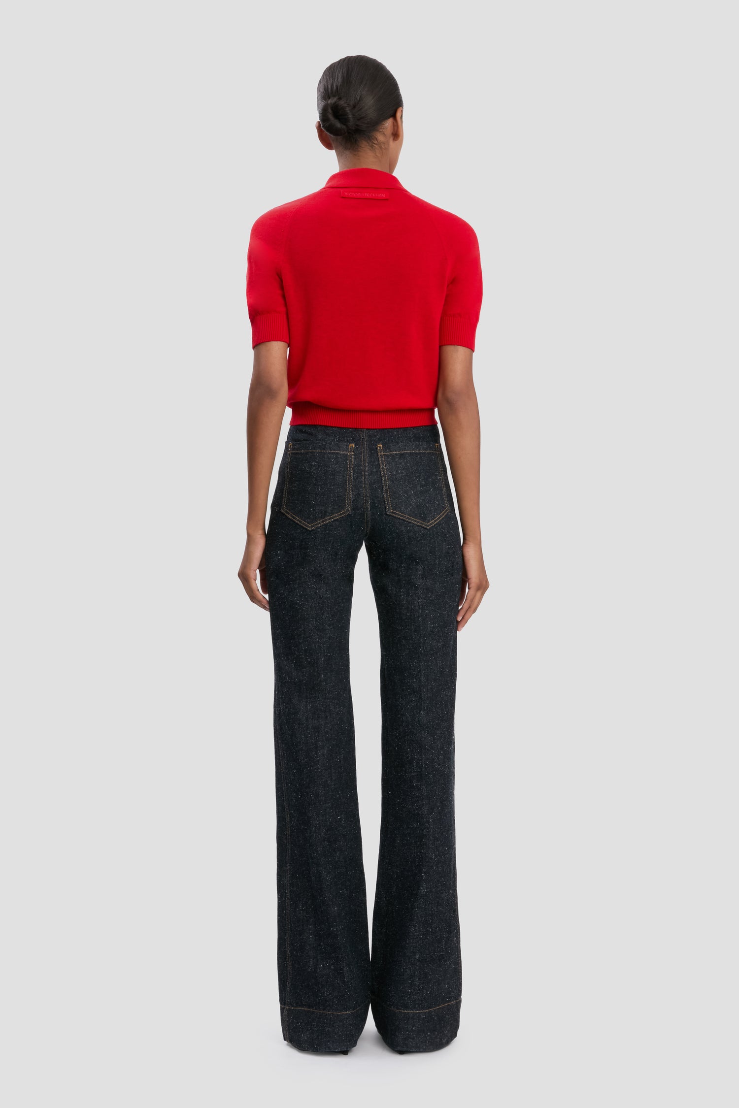 Smart but with a sports-luxe undertone, the Polo Top has a traditional button collar, relaxed raglan sleeves and an integral ribbed trim. Crafted from a fine-gauge knit, the Polo Top in Cardinal Red brings fresh energy to a familiar silhouette.