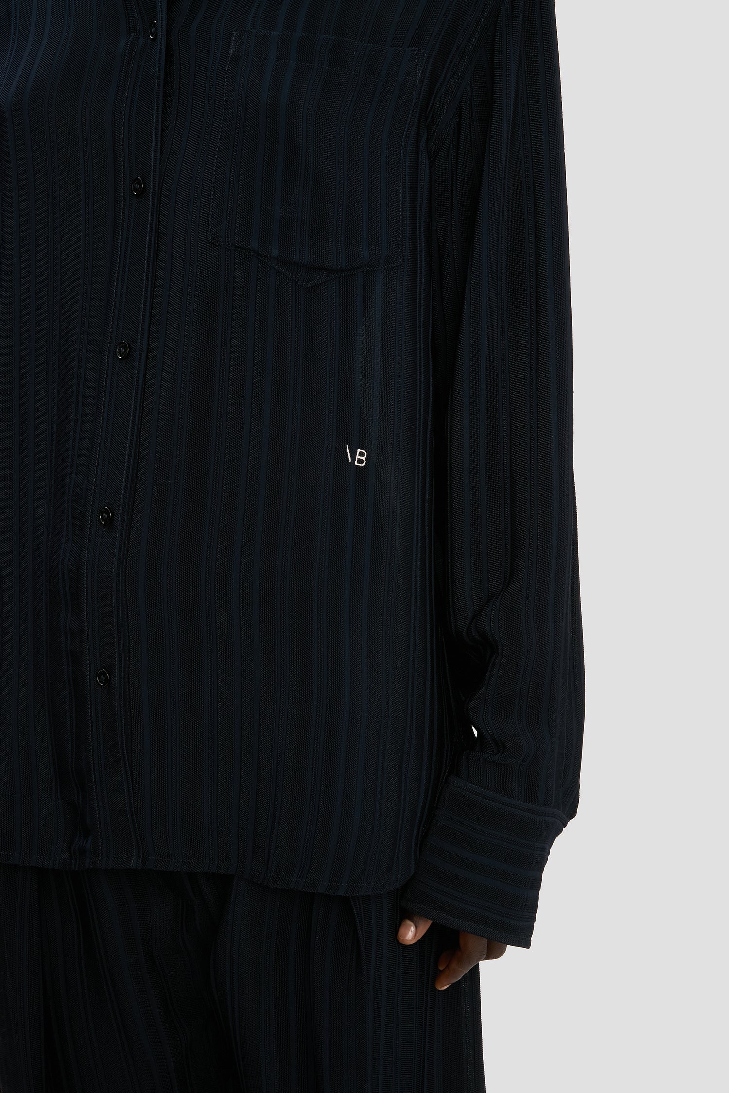 Inspired by the comfort and ease of loungewear, the Pyjama Shirt in Navy is an elevated take on an everyday item. Reinvented in a tactile ribbed jacquard, the Pyjama Shirt has a softly structured silhouette with patch pockets, cuff plackets and a back yoke with tonal topstitching.