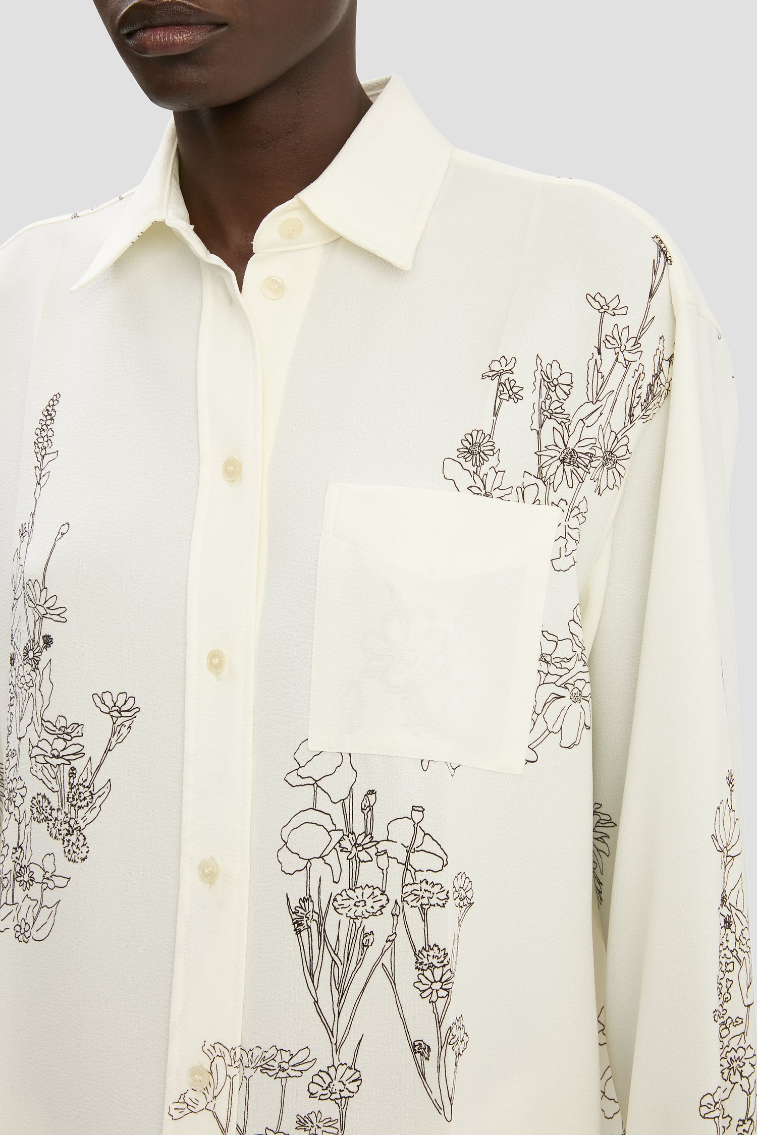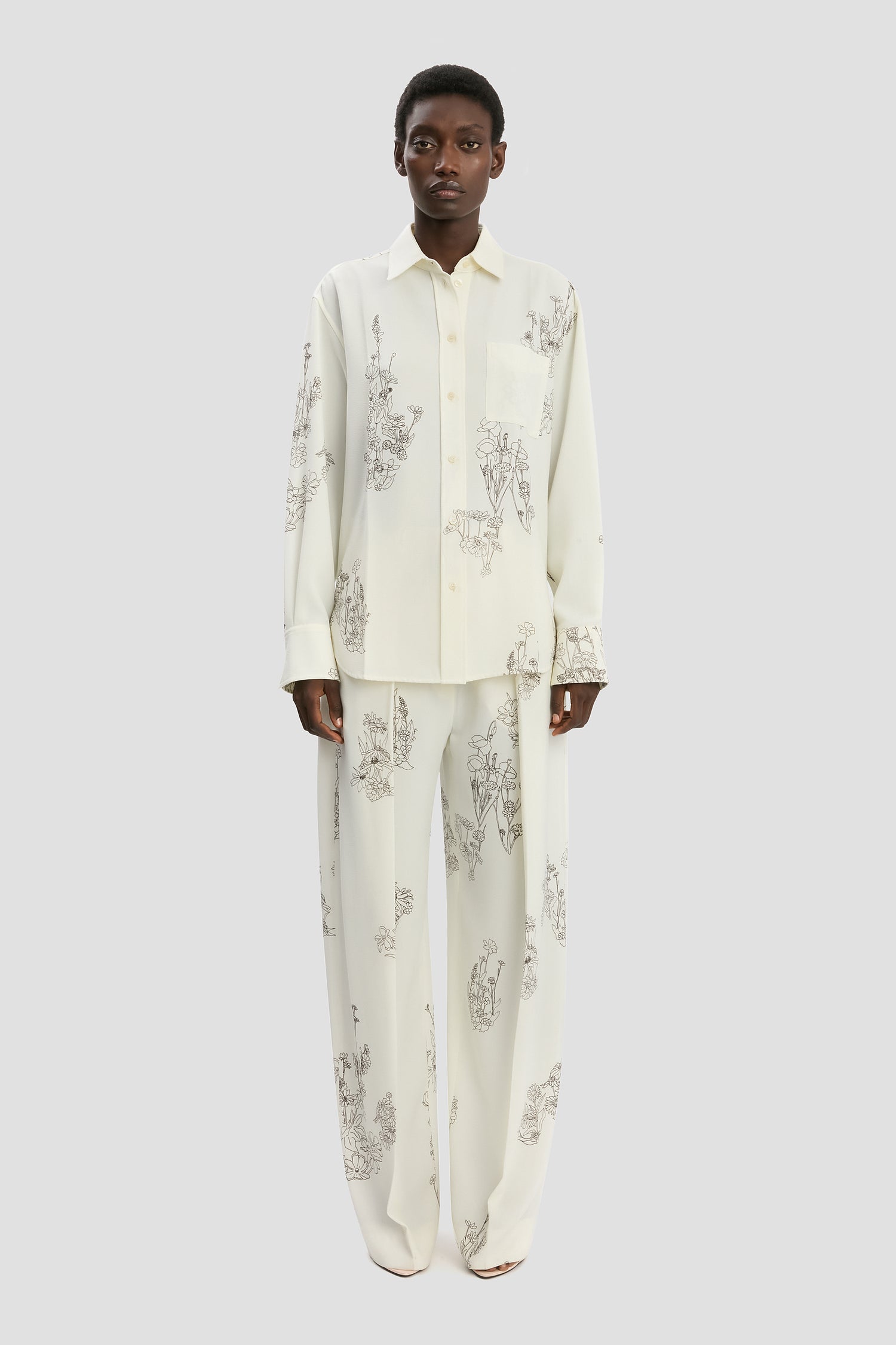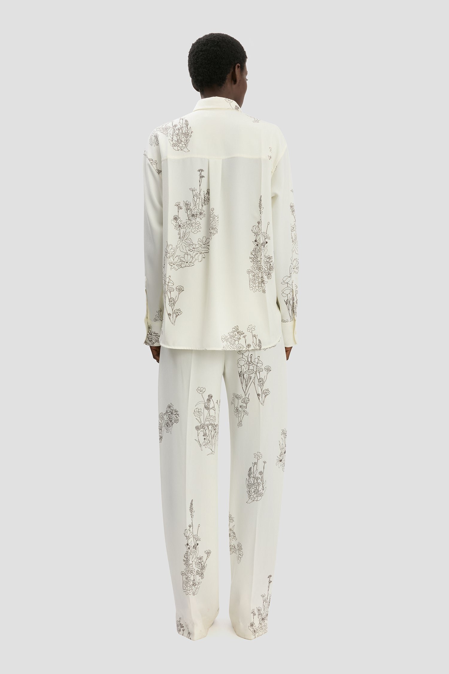 A pretty floral design brings a feminine point of difference to the Pyjama Shirt’s boyish undertone. Defined by a softly structured silhouette, it has patch pockets, cuff plackets and a back yoke with tonal topstitching. It is an elevated take on the everyday.