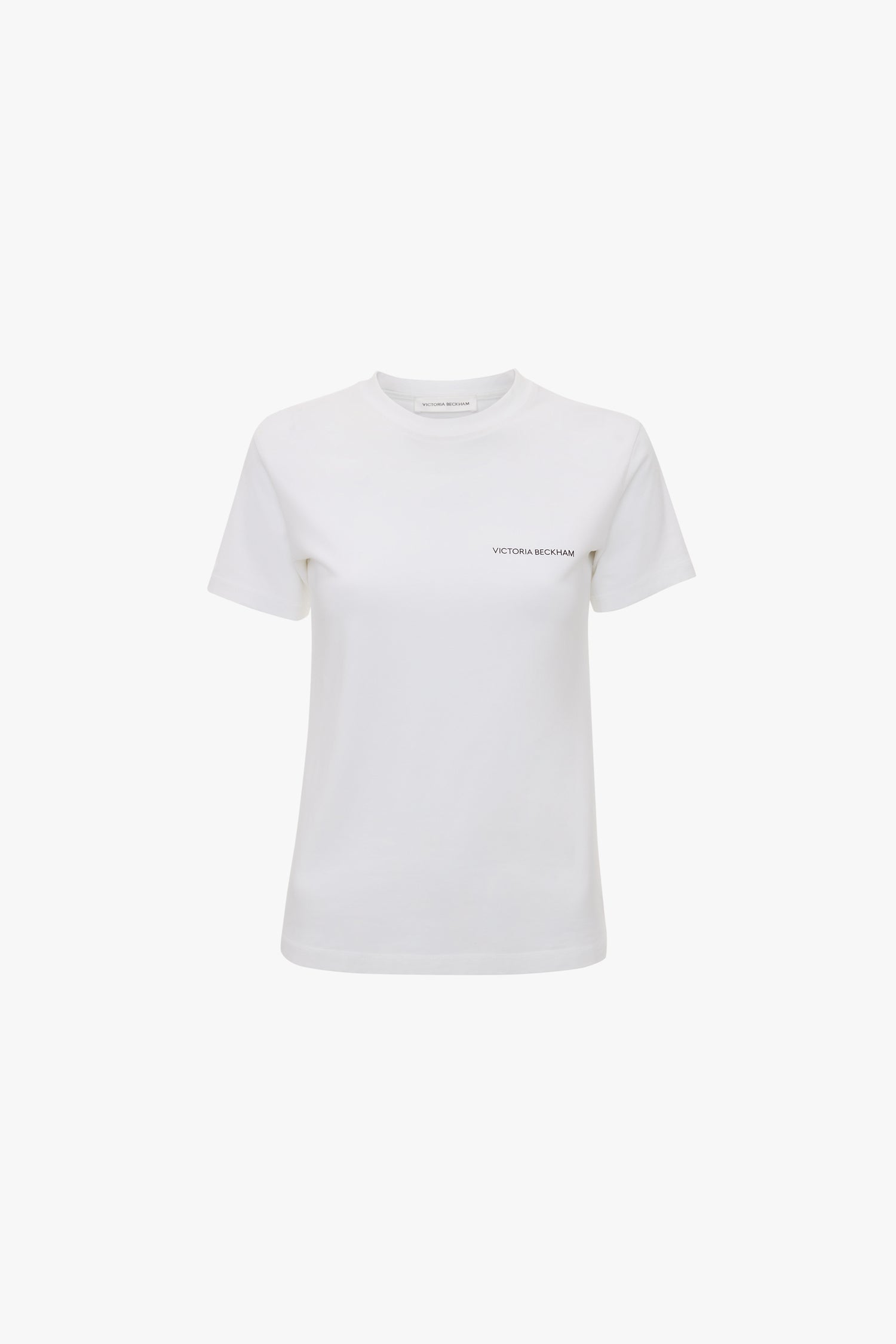 • Contrast Victoria Beckham logo print at wearers left front chest