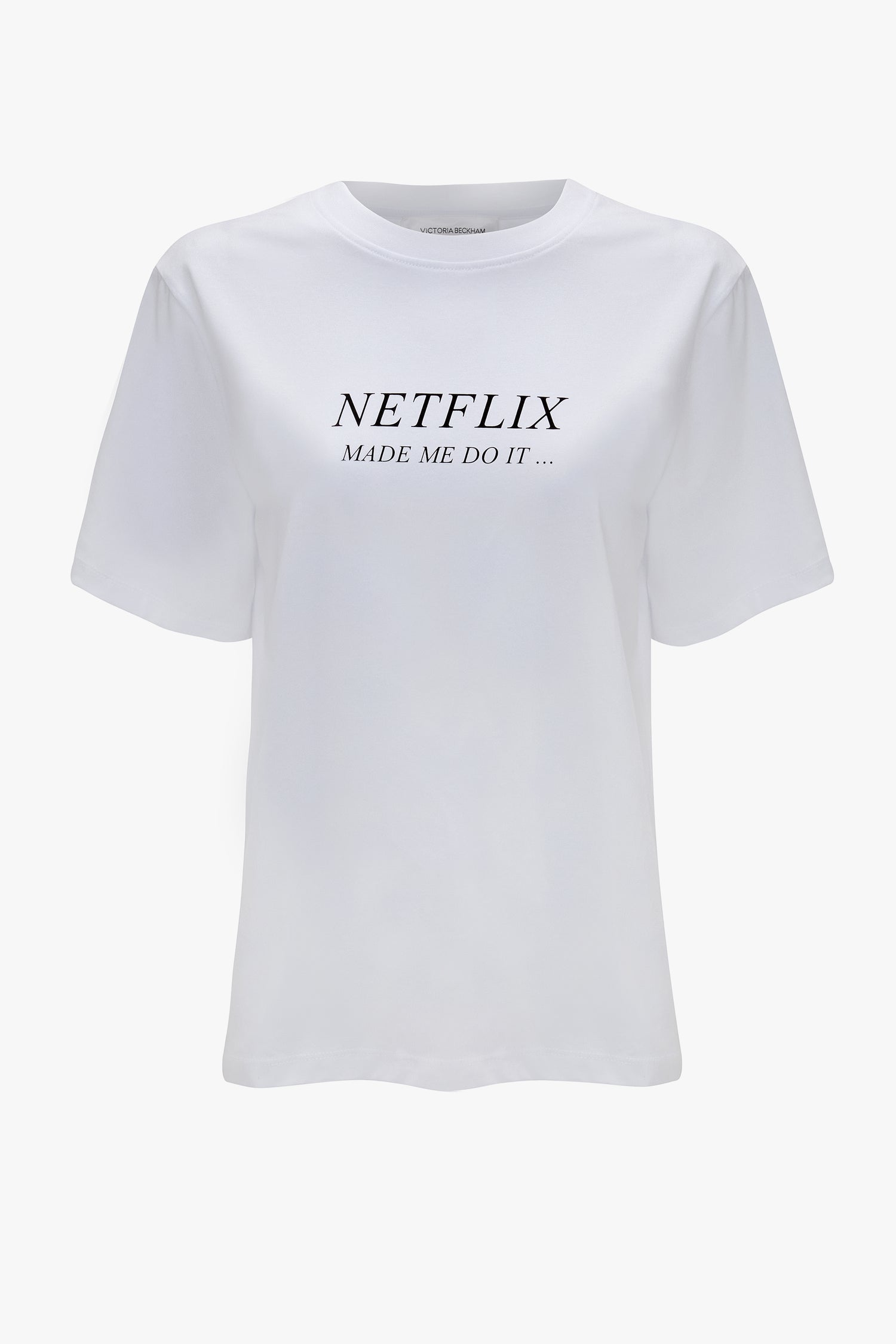 Slogan T-Shirts are a hallmark of the Victoria Beckham brand and reflect the house's tongue-in-cheek playfulness. With a classic Victoria Tee fit, the Netflix Made Me Do It Slogan T-Shirt has a relaxed but polished silhouette. Made from 100% organic cotton, it has a tactile, elevated feel.