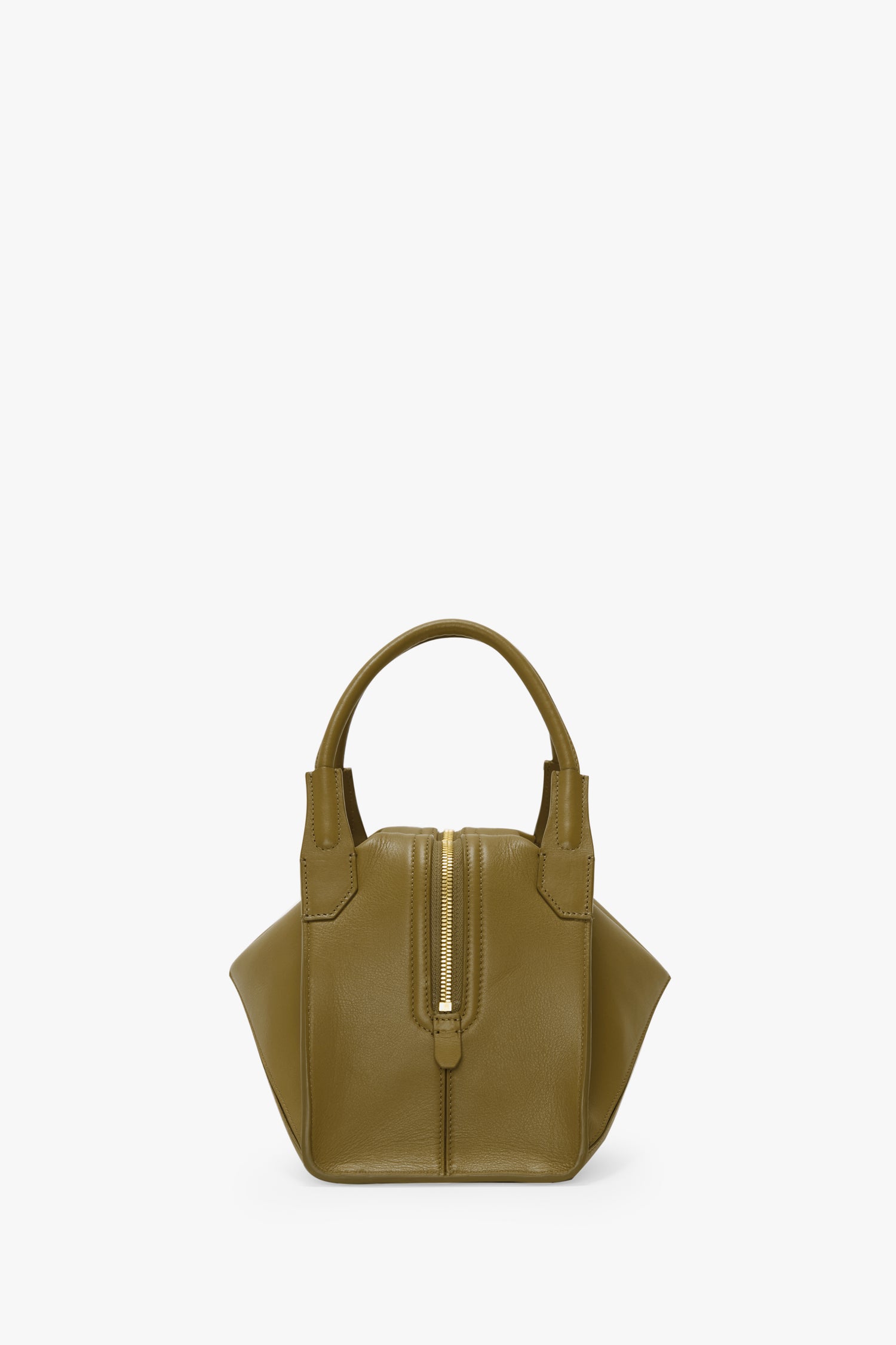 A relaxed silhouette defines the Victoria Plié Bag. Crafted from supple calf leather and lined with a tonal suede fabric, it has a zip top closure, a single compartment and removable shoulder strap to accommodate versatile styling. Presented in Cactus Green, it has an easy sophistication.