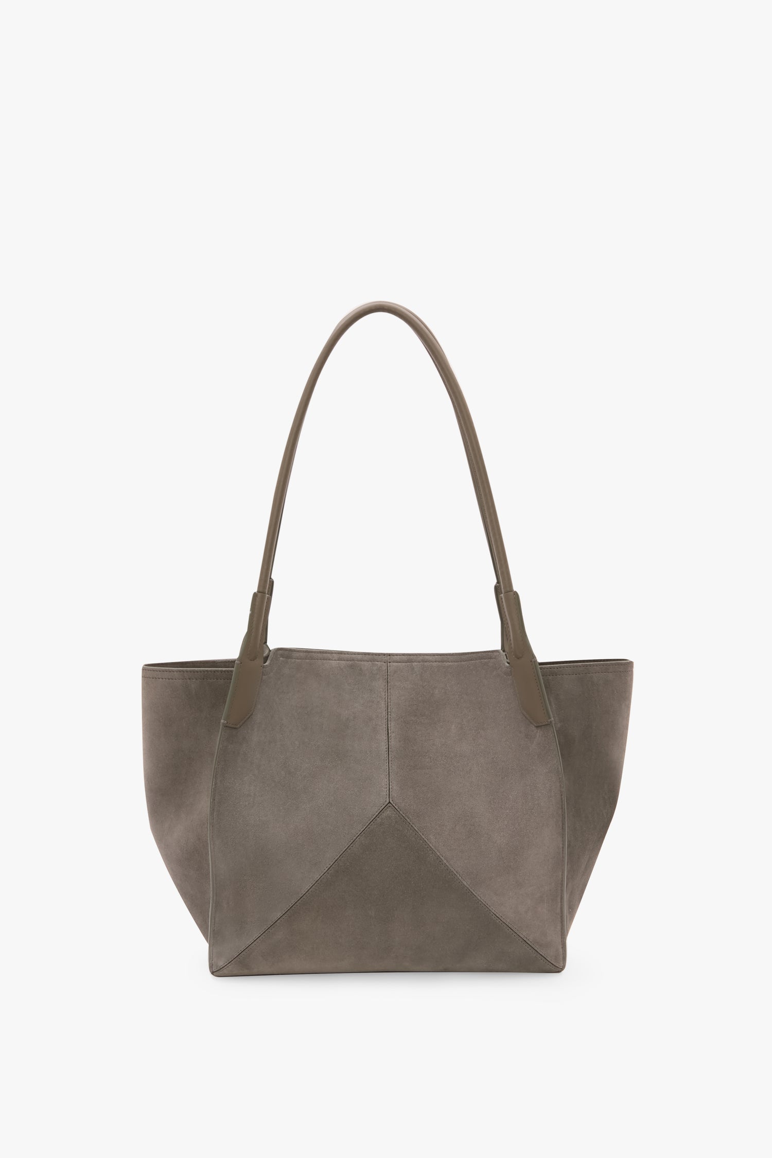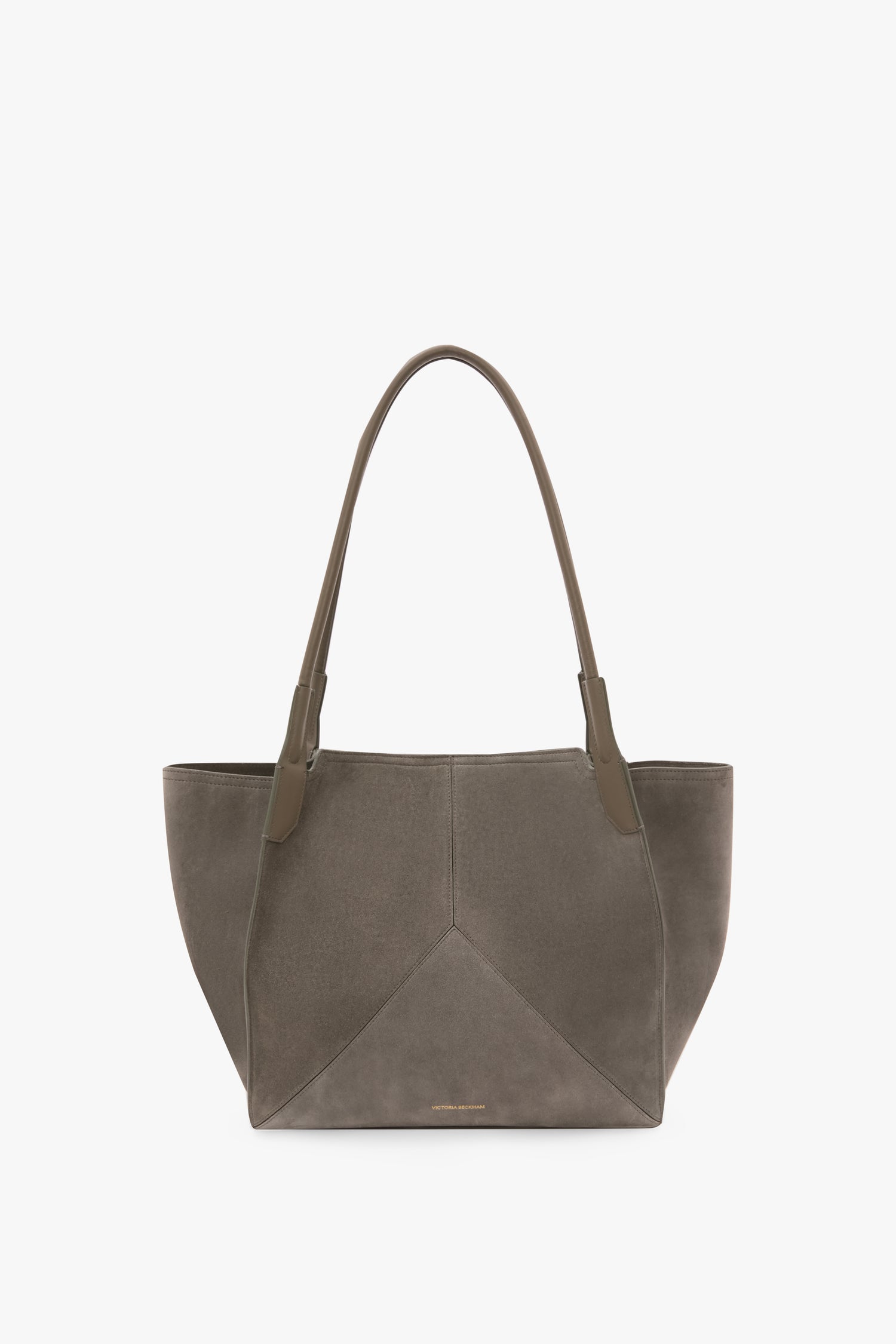 An unstructured silhouette, simple lines and discreetly decorative V stitched panels define the Victoria Tote. Crafted in Italy from soft calf suede leather with tonal suede lining, it has an internal flat pocket and signature gold branding, including a Victoria Beckham logo and unique serial code. Presented in versatile Pebble Grey, it expresses the house’s contemporary design language.