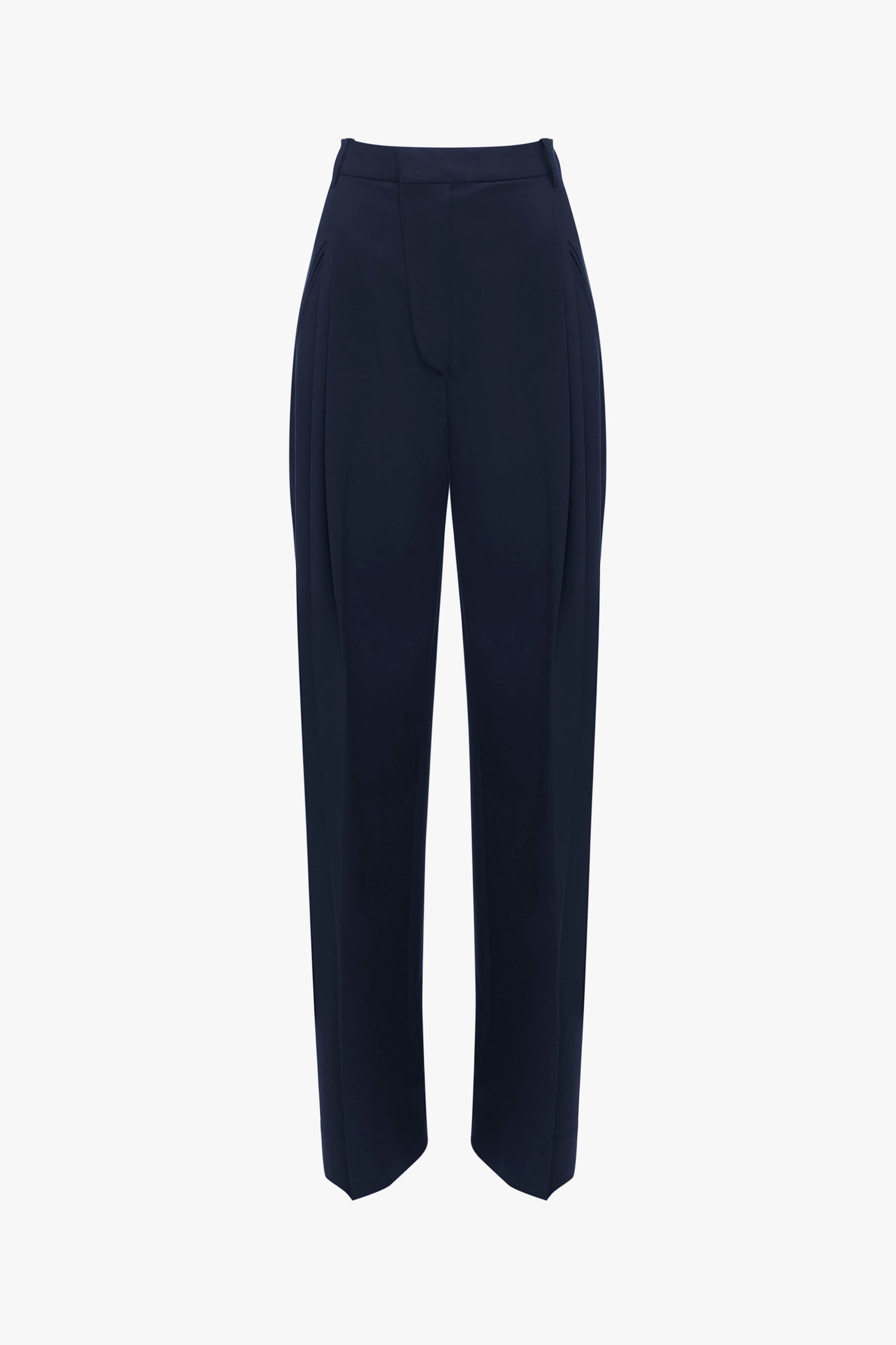 A high-waisted cut with pleated front legs and side pockets imbue the Wide Leg Trouser with a relaxed sophistication. Reimagined in versatile Midnight for the new season, elevated detailing includes a rear curved seam detail and asymmetric zip placket to the front.